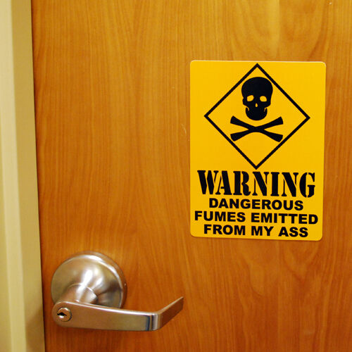 "Warning Dangerous Fumes Emitted From My Ass" Bathroom Office Prank Gag Sign