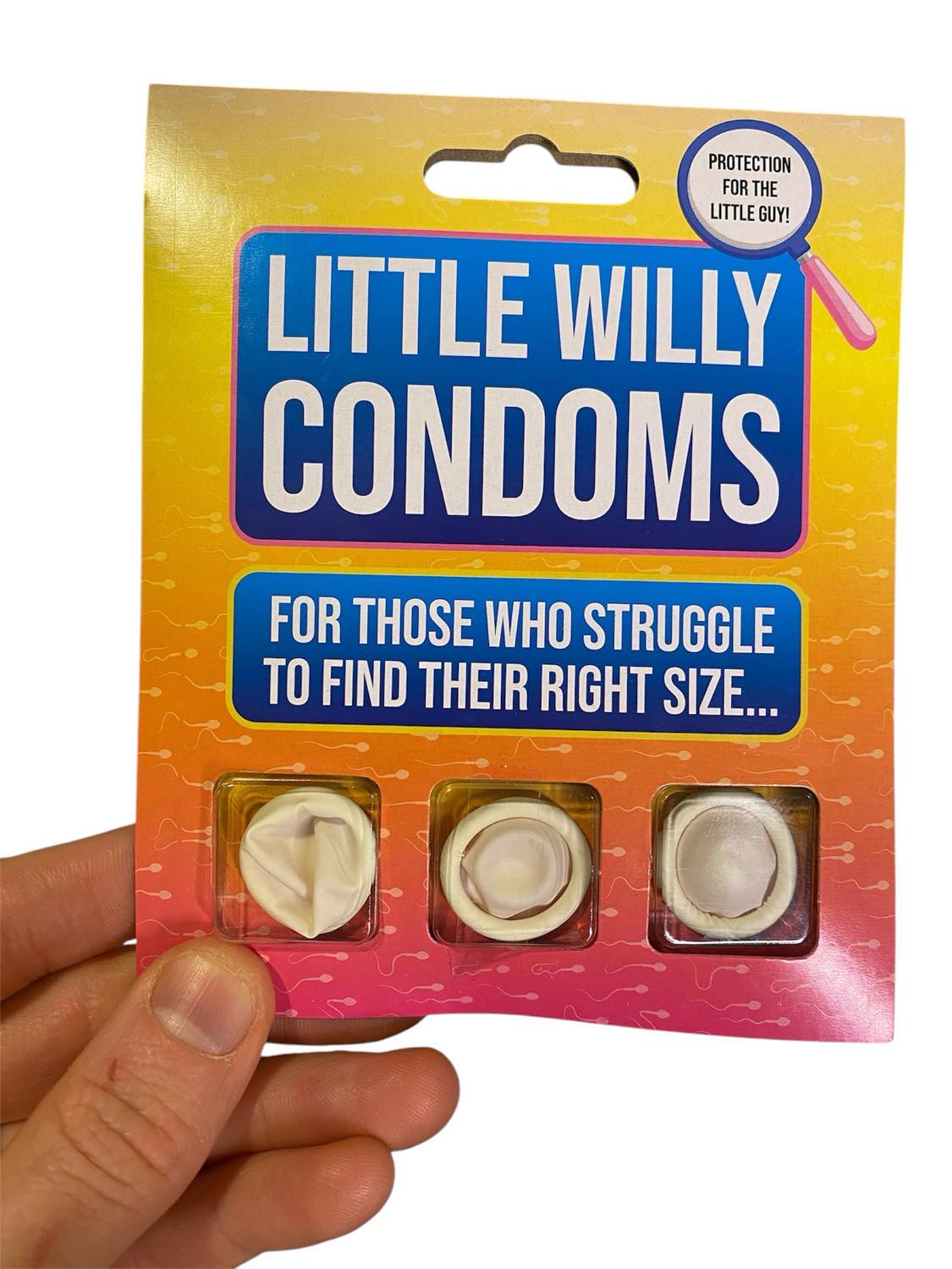 Paquete de 3 CONDONES SMALL PECKER WILLY - Mini Tiny GaG Broma Regalo divertido Fiesta de gallina