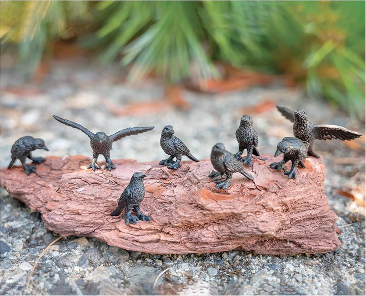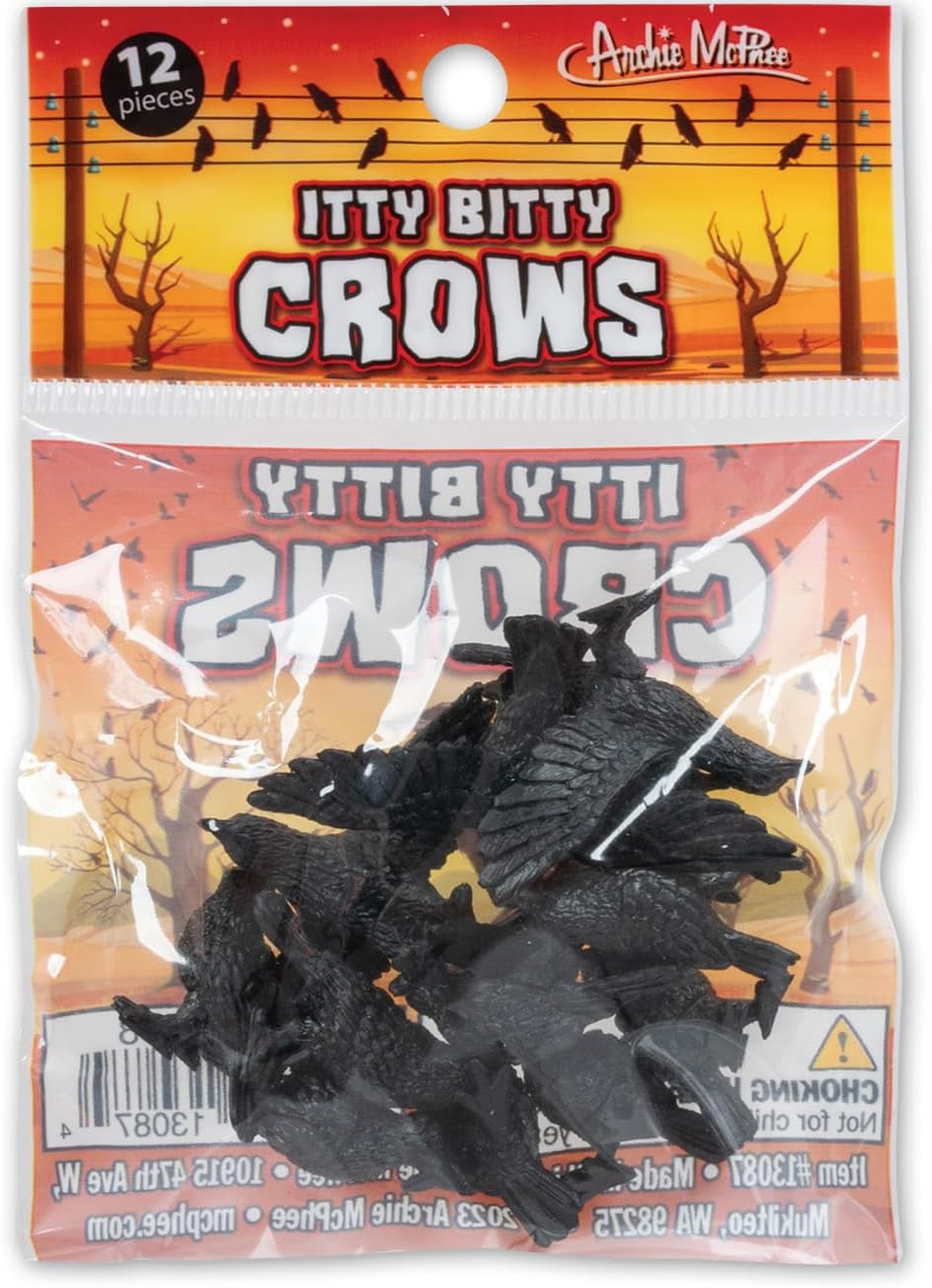 Itty Bitty Black Crows 🖤 – Realistic Mini Crow Figurines (Set of 12) | Bird Decorations - Archie McPhee
