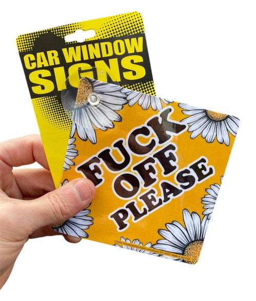 "F#%K OFF PLEASE" Plastic Car Window Suction Cup Decal Sign - Made in USA